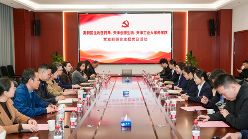 3月30日下午,药学院直属党支部联合天津滨海高新区生物医药产业局党支部、细胞生态海河实验室党支部及天津创源生物技术有限公司党支部,共同举办联合主题党日活动。高新区生物医药局副局长程瑜、潘金金带领局内党员干部,创源生物常务副总裁史亚丽、副总裁邢纪强及公司骨干代表,细胞生态海河实验室相关代表,药学院领导班子全体成员携学院骨干教师及党员代表共同参加活动。