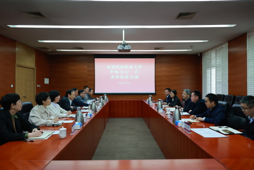 4月2日,民政职业大学党委书记、校长李绚一行来我校调研交流。校长姜勇出席,相关职能部门负责同志参加,座谈会由党委办公室(校长办公室)主任李鑫主持。