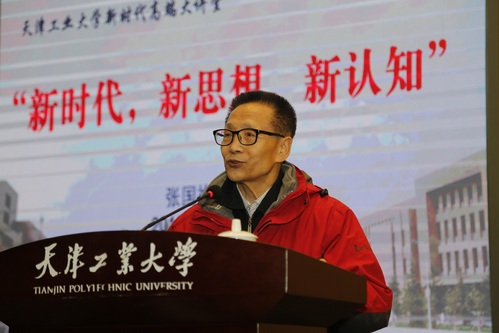 2018年11月30日上午,“新时代 新思想 新观念——天津工业大学高端大讲堂”第六讲在学术中心报告厅举行。我校讲座教授、中央马克思理论研究和建设工程第一首席专家张国祚教授担任主讲嘉宾。校领导连洁、王晨亮、程博闻出席报告会,各职能部门中层干部代表,基层党委书记、副书记,党校学员,学生工作干部代表,马克思主义学院教师近300人聆听了报告。报告由党委书记连洁主持。