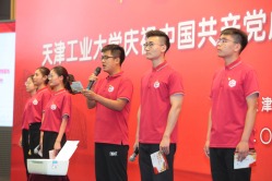 在优秀事迹分享《初心·誓言》环节,来自学校不同岗位不同年龄的优秀共产党员代表发出“我是共产党员”的豪迈宣言,离退休党员代表吴关臣老师,天津市德业双馨教师、师德先进个人、纺织学院王建坤老师,天津市高校青年教师教学基本功竞赛一等奖获得者、机械学院苏文老师,全国高校思政课教学骨干、马克思主义学院聂丽琴老师,化工学院辅导员赵鹏老师,全国志愿服务西部计划优秀志愿者、学生党员李凯,助人为乐优秀大学生、新党员代表李佳宁7位代表一一上台,“亮身份”“亮承诺”,表达了不忘初心再出发,牢记使命勇担当的决心和壮志。随后,全体与会党员集体宣誓,重温入党誓词,将大会推向高潮。