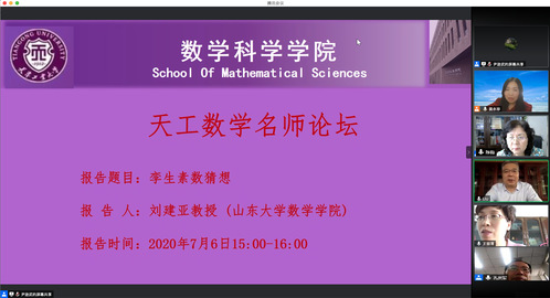 2020年7月6日,应我校数学科学学院邀请,山东大学副校长,“国家杰出青年基金”获得者、国家重要 人才入选者刘建亚教授为我校师生作“云”报告。