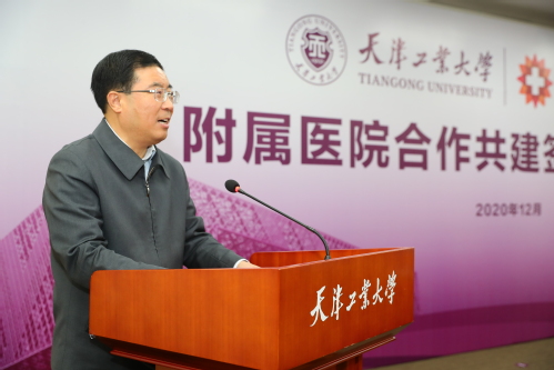 2020年12月4日下午,天津工业大学又一附属医院加盟,学校与天津市北辰医院签署全面合作协议,“天津工业大学北辰医院”在隆重喜庆的音乐声中揭牌。中国工程院院士、天津工业大学校长夏长亮,校党委副书记陈泮成,常务副校长陈莉,北辰区区委副书记、区长王宝雨,区委副书记陈健,区委常委、组织部部长刘向锋,北辰医院党委书记、院长许建辉以及双方相关部门负责同志参加签约揭牌仪式。