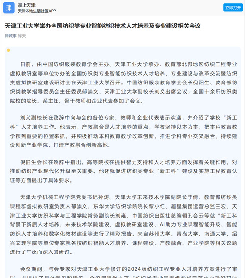 掌上天津丨天津工业大学举办全国纺织类专业智能纺织技术人才培养及专业建设相关会议