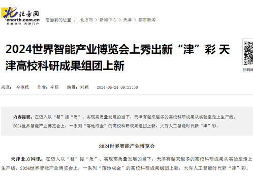 北方网丨2024世界智能产业博览会上秀出新“津”彩 天津高校科研成果组团上新