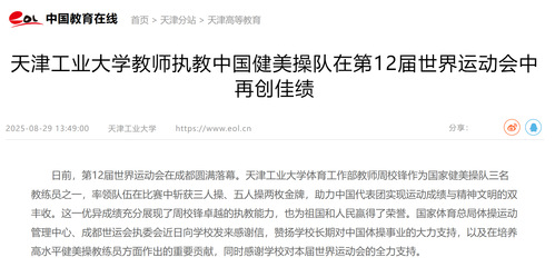 中国教育在线丨天津工业大学教师执教中国健美操队在第12届世界运动会中再创佳绩