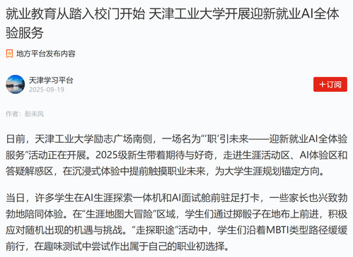 学习强国丨就业教育从踏入校门开始 天津工业大学开展迎新就业AI全体验服务