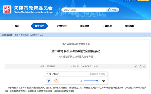 天津市教育委员会网站丨2025年国家网络安全宣传周全市教育系统开展网络安全宣传活动为构建清朗网络空间注入青春力量
