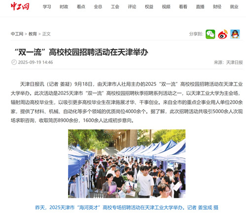中工网丨“双一流”高校校园招聘活动在天津举办