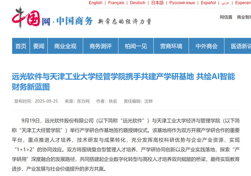 中国网丨远光软件与天津工业大学经管学院携手共建产学研基地 共绘AI智能财务新蓝图