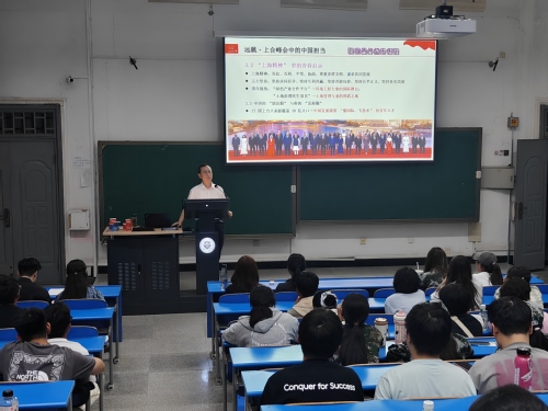 9月25日,环境科学与工程学院党委书记许世超以“青春向党·强国有我——阅兵荣光,上合担当,以专业初心赴时代之约”为主题,为2025级全体新生讲授“铸魂”党课。学院党委副书记卢静、辅导员及2025级本科生、研究生参加。