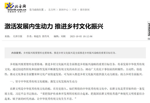 北方网丨激活发展内生动力 推进乡村文化振兴