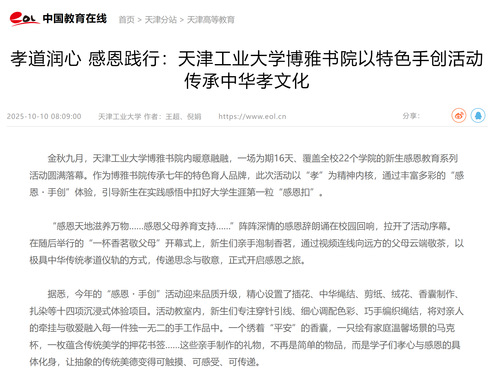 中国教育在线丨孝道润心 感恩践行:天津工业大学博雅书院以特色手创活动传承中华孝文化