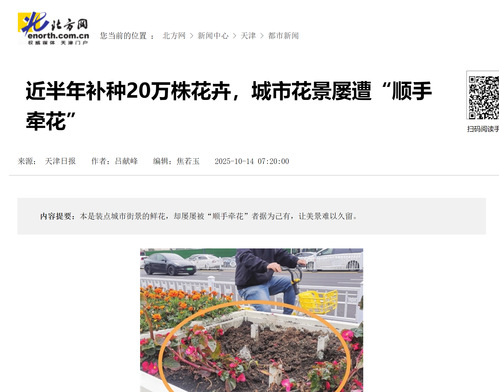 北方网丨近半年补种20万株花卉,城市花景为何屡遭“顺手牵花”?