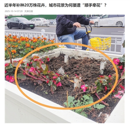 津云丨近半年补种20万株花卉,城市花景为何屡遭“顺手牵花”?