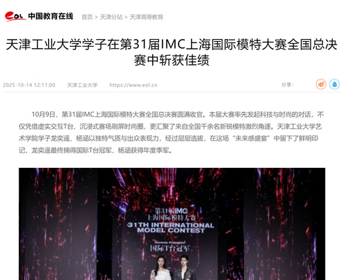 中国教育在线丨天津工业大学学子在第31届IMC上海国际模特大赛全国总决赛中斩获佳绩