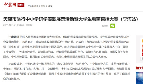 中宏网丨天津市举行中小学研学实践展示活动暨大学生电商直播大赛(宁河站)