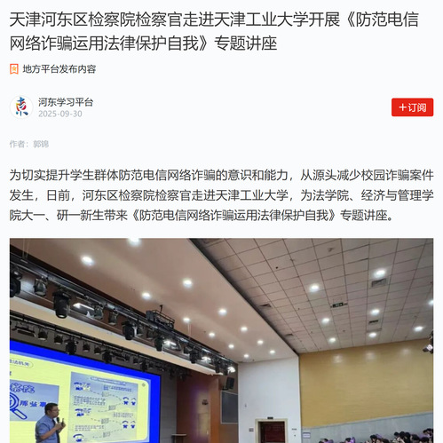 学习强国丨天津河东区检察院检察官走进天津工业大学开展《防范电信网络诈骗运用法律保护自我》专题讲座