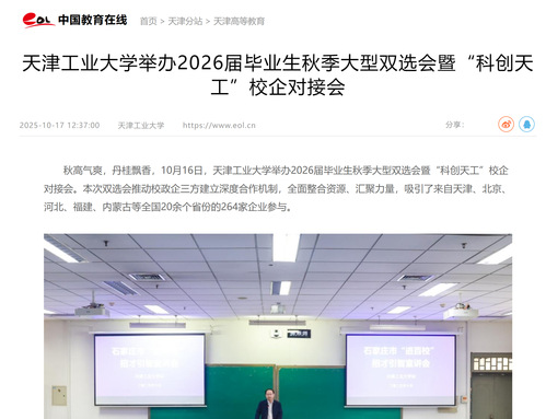 中国教育在线丨天津工业大学举办2026届毕业生秋季大型双选会暨“科创天工”校企对接会