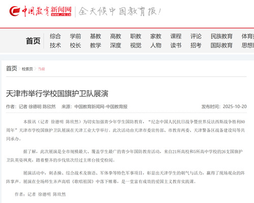 中国教育新闻网丨天津市举行学校国旗护卫队展演