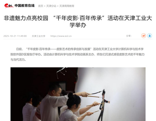 中国教育在线丨非遗魅力点亮校园 “千年皮影·百年传承”活动在天津工业大学举办