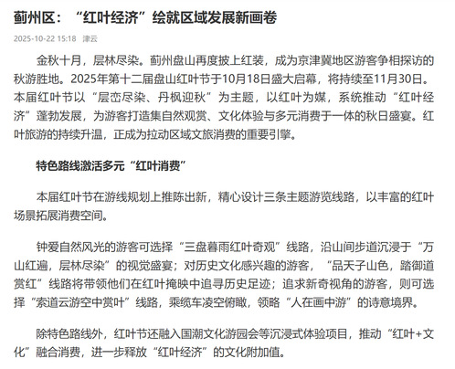 津云丨蓟州区:“红叶经济”绘就区域发展新画卷
