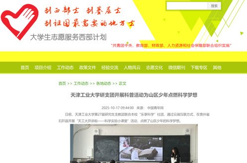 中国青年网丨天津工业大学研支团开展科普活动为山区少年点燃科学梦想