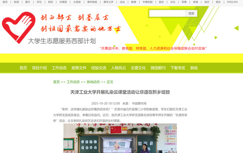 中国青年网丨天津工业大学开展扎染云课堂活动让非遗在黔乡绽放