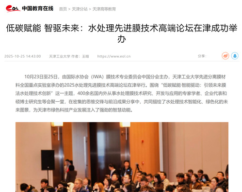 中国教育在线丨低碳赋能 智驱未来:水处理先进膜技术高端论坛在津成功举办