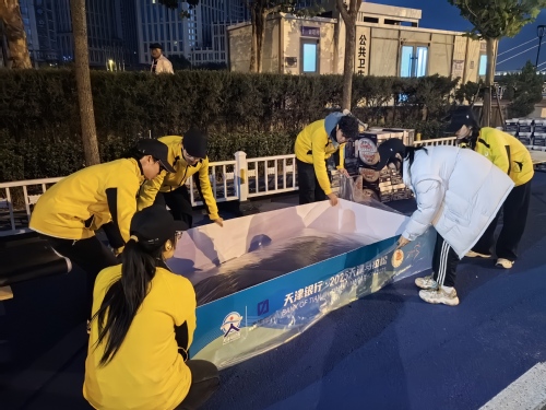 凌晨4:30,天还未亮,天工志愿者已在校园集结完毕。带着饱满热情与责任担当,志愿者们统一乘车奔赴各自的服务点位,迅速投入赛前筹备,从物资分拣到场地布置,快速完成各项准备工作。发令枪响后,跑者奔涌而来,志愿者们始终保持微笑站姿,持续暖心加油助威,用默契配合与热情服务圆满完成天津马拉松志愿服务任务,获得组委会与参赛选手的一致好评。