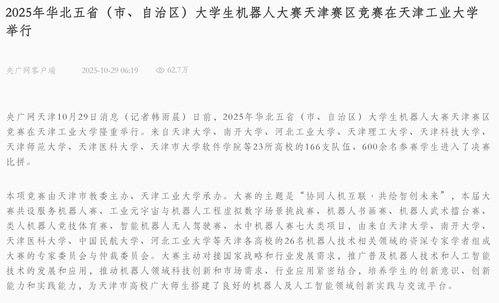央广网丨2025年华北五省(市、自治区)大学生机器人大赛天津赛区竞赛在天津工业大学举行