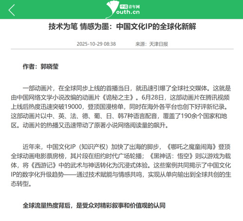 中国青年网丨技术为笔 情感为墨:中国文化IP的全球化新解