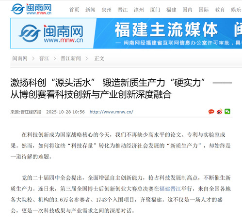 闽南网丨激扬科创“源头活水” 锻造新质生产力“硬实力” ——从博创赛看科技创新与产业创新深度融合