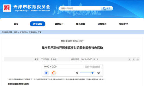 天津市教育委员会网站丨金秋重阳至 孝亲正当时我市多所高校开展丰富多彩的尊老爱老特色活动