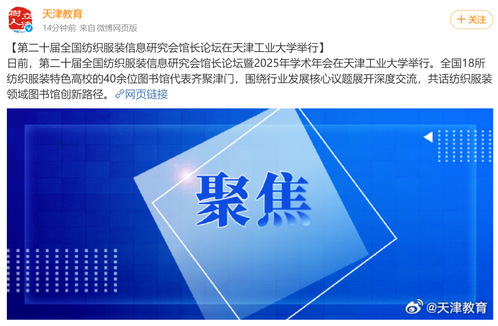 日前,第二十届全国纺织服装信息研究会馆长论坛暨2025年学术年会在天津工业大学举行。全国18所纺织服装特色高校的40余位图书馆代表齐聚津门,围绕行业发展核心议题展开深度交流,共话纺织服装领域图书馆创新路径。