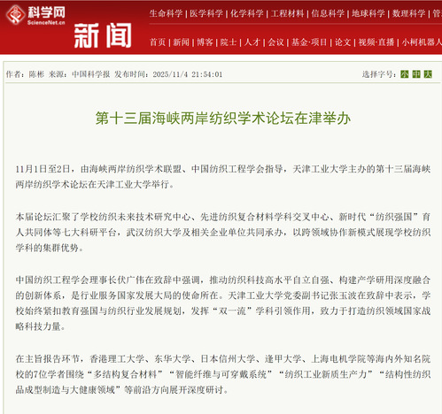 科学网丨第十三届海峡两岸纺织学术论坛在津举办
