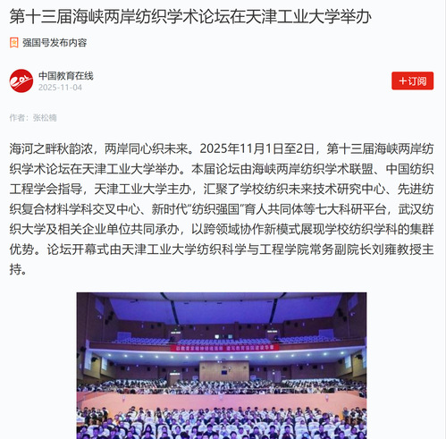 学习强国丨第十三届海峡两岸纺织学术论坛在天津工业大学举办