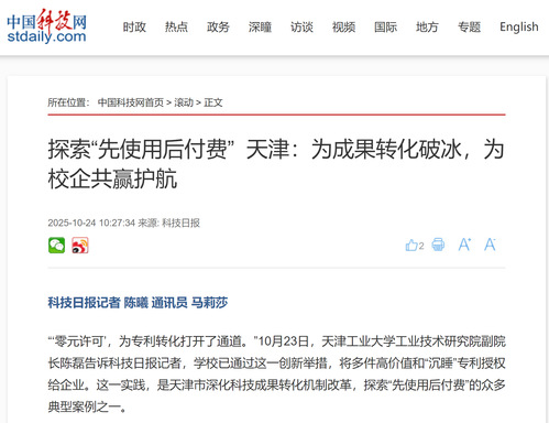 中国科技网丨探索“先使用后付费” 天津:为成果转化破冰,为校企共赢护航