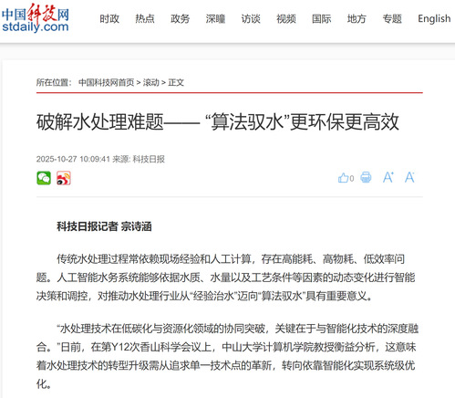 中国科技网丨破解水处理难题—— “算法驭水”更环保更高效