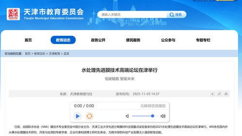 天津市教育委员会网站丨水处理先进膜技术高端论坛在津举行低碳赋能 智驱未来