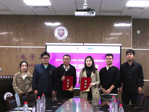 近日,电子与信息工程学院与新东方国际教育培训事业部天津分中心成功举行校企战略合作签约仪式。学院党委副书记李东、辅导员代表,新东方国际教育培训事业部天津分中心大学项目副总监张奕炫、大学市场主管秦振旭、大学市场渠道区域负责人刘彬出席签约仪式。