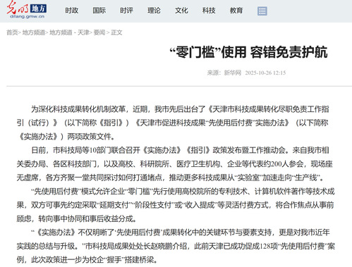 为深化科技成果转化机制改革,近期,我市先后出台了《天津市科技成果转化尽职免责工作指引(试行)》(以下简称《指引》)《天津市促进科技成果“先使用后付费”实施办法》(以下简称《实施办法》)两项政策文件。