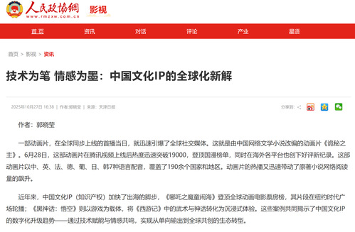 人民政协网丨技术为笔 情感为墨:中国文化IP的全球化新解