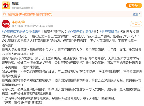 “半月谈”微博丨如厕先“猜”男女?#公厕标识抽象化#
