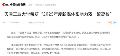 中国教育在线丨天津工业大学荣获“2025年度新媒体影响力双一流高校”