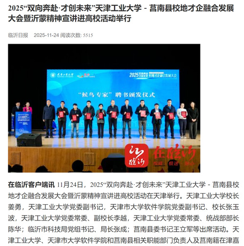 在临沂客户端丨2025“双向奔赴·才创未来”天津工业大学-莒南县校地才企融合发展大会暨沂蒙精神宣讲进高校活动举行