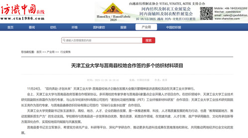 纺织中国在线丨天津工业大学与莒南县校地合作签约多个纺织材料项目