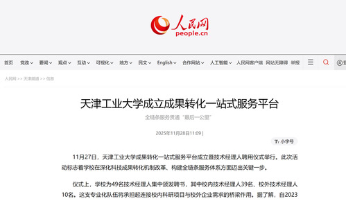 人民网丨天津工业大学成立成果转化一站式服务平台全链条服务贯通“最后一公里”