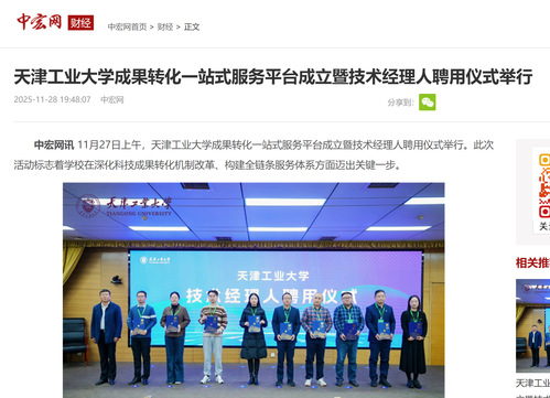 中宏网丨天津工业大学成果转化一站式服务平台成立暨技术经理人聘用仪式举行