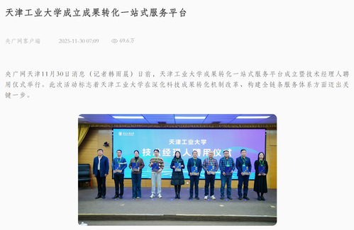 央广网丨天津工业大学成立成果转化一站式服务平台