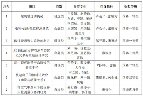 我校师生勇闯第十一届全国大学生物理实验竞赛(创新)决赛齐获一等奖